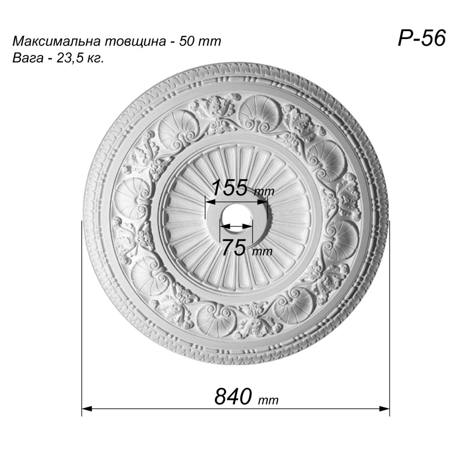 розетка з гіпсу Р-56 діаметром Ø840 мм — це середньо розмірна
