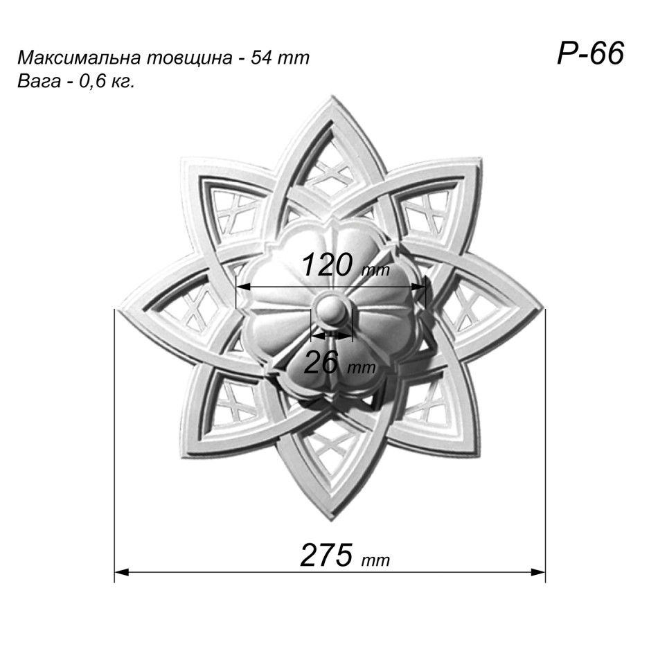 Купити Розетка стельова з гіпсу Р-66 діаметром Ø275 мм -