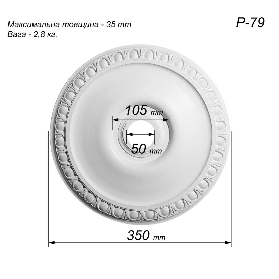 Купити Розетка стельова з гіпсу Р-79 діаметром Ø350 мм -