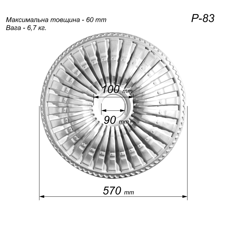 Купити Розетка стельова з гіпсу Р-83 діаметром Ø570 мм -