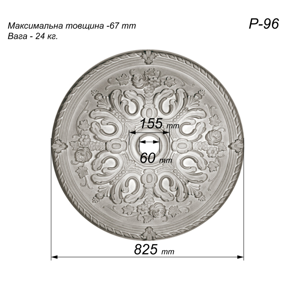 Особливості Розетка стельова з гіпсу Р-96 Ø825 мм: