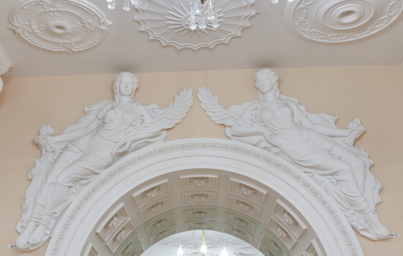 Каріатида КР-11 надає інтер'єру елегантності, динаміки та утонченої скульптурної декоративності. Вона створює потужний архітектурний акцент, підкреслюючи класичний характер простору та його престижність.