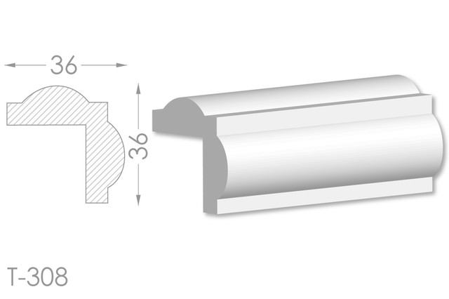 Молдинг – (Тяга) - універсальний декоративний елемент з гіпсу, оригінальної форми, який використовується для кріплення на вертикальну площину. Виріб призначений для декорування внутрішніх стін приміщень. Мета-створення особливого візуального ефекту, зонування стельової області, верхньої частини стін, завершення дизайнерського інтер'єру, внесення «останніх штрихів». Конструкція виконана з якісних матеріалів, колір – білий, відповідний кольору сировини. Молдинг може бути декорований відповідно до обраної колірної гами стилем, пофарбованим в необхідний відтінок. Параметри виробу: висота – 36 мм, ширина – 36 мм.