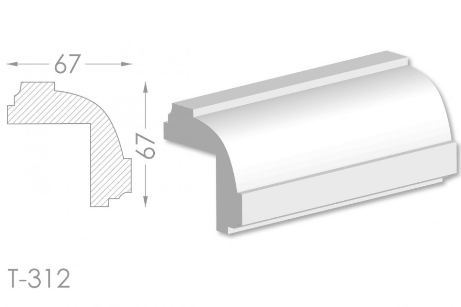 Молдинг – (Тяга) - універсальний декоративний елемент з гіпсу, оригінальної форми, який використовується для кріплення на вертикальну площину. Виріб призначений для декорування внутрішніх стін приміщень. Мета-створення особливого візуального ефекту, зонування стельової області, верхньої частини стін, завершення дизайнерського інтер'єру, внесення «останніх штрихів». Конструкція виконана з якісних матеріалів, колір – білий, відповідний кольору сировини. Молдинг може бути декорований відповідно до обраної колірної гами стилем, пофарбованим в необхідний відтінок. Параметри виробу: висота – 67 мм, ширина – 67 мм.