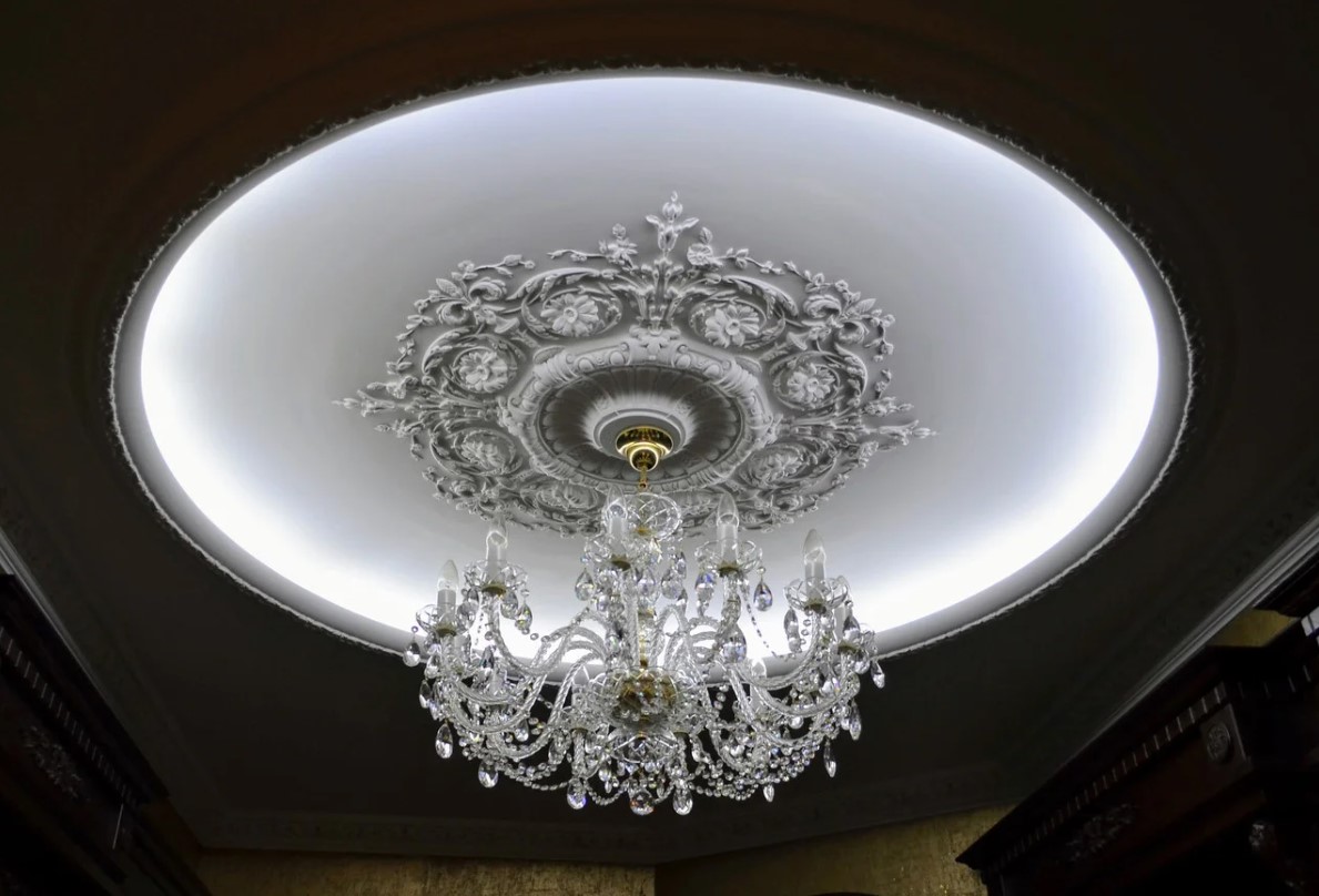 Це центр композиції. Розетки з гіпсу найчастіше встановлюються в місцях кріплення люстр або підвісних світильників. Вони підкреслюють симетрію, додають витонченості та роблять перехід від стелі до світильника більш органічним. Різноманітність дизайнів - від лаконічних геометричних до розкішних квіткових - дає змогу підібрати розетку під будь-який інтер'єр.