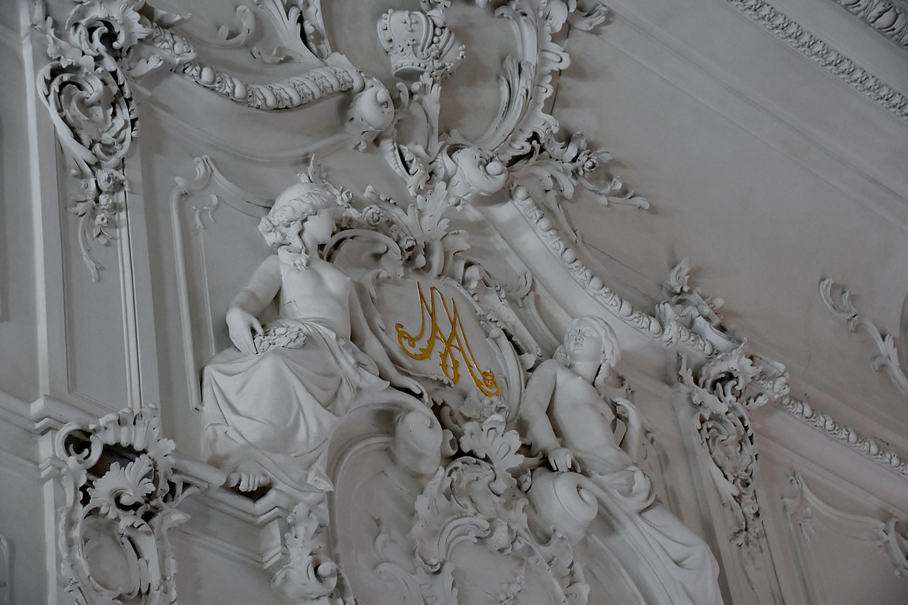 З урочистим настроєм бароко відмінно поєднуються рельєфні колони, капітелі і балки. Візерунки на елементах мають загадкову форму - характерне зображення бутонів квітів, гілочок з гірляндами плодів, наявність окантовки у вигляді сувоїв.