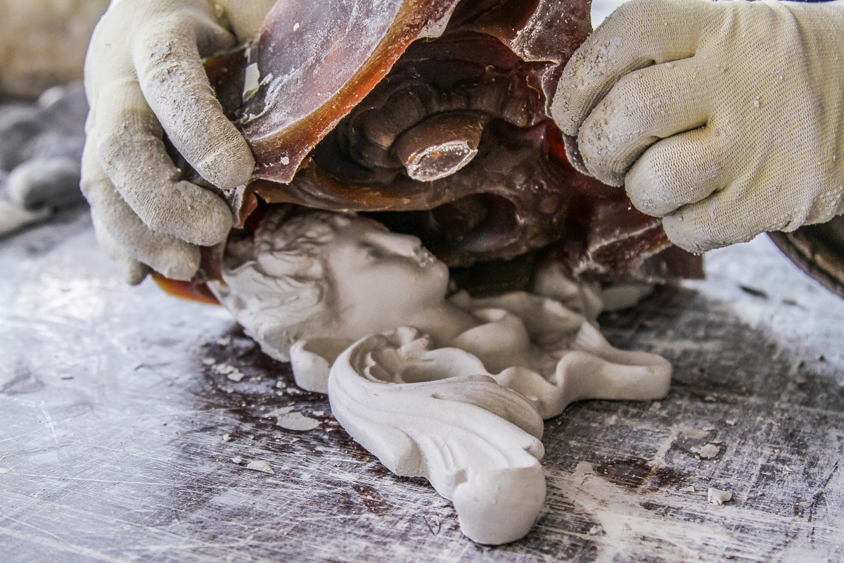 Основа успішного виробництва інтер'єрного та фасадного декору - суворе дотримання технології обробки гіпсу. Першочергова задача майстрів - моделювання декоративного елемента по фотографії, ескізу або кресленням. Плоскі та об'ємні моделі з гладкою поверхнею і з орнаментами, виготовляють із різних розчинів, а потім використовують для зняття відливальної форми. Коли вона готова, здійснюють перевірку на відповідність вимогам ескізу, і приступають до наступного етапу.