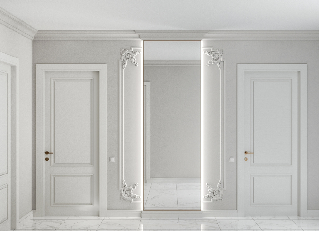 В інтер'єрах класичного стилю гіпсова ліпнина вважається невід'ємною частиною. Настінні гіпсові молдинги часто використовують для створення рамок під картини, дзеркала, освітлювальні прилади або декоративні елементи, такі як каміни.