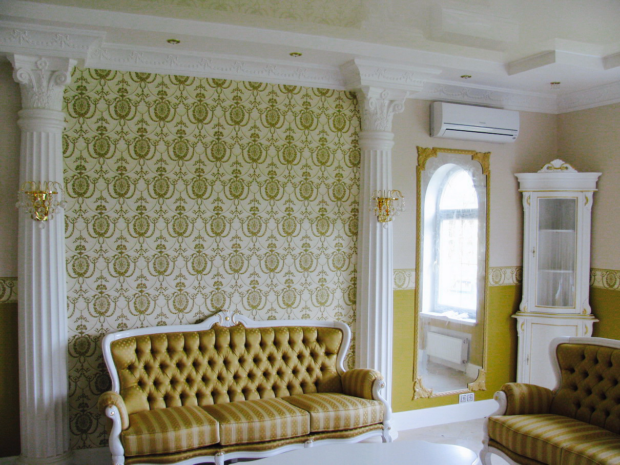 - Гіпс є одним з найбільш популярних матеріалів для виготовлення колон завдяки своїй відносній легкості та простоті обробки. Колони з гіпсу відрізняються елегантним зовнішнім виглядом і можуть бути легко встановлені в різних приміщеннях. Цей матеріал також має відмінну пластичність, що дає змогу створювати різноманітні декоративні елементи та візерунки на поверхні колон.