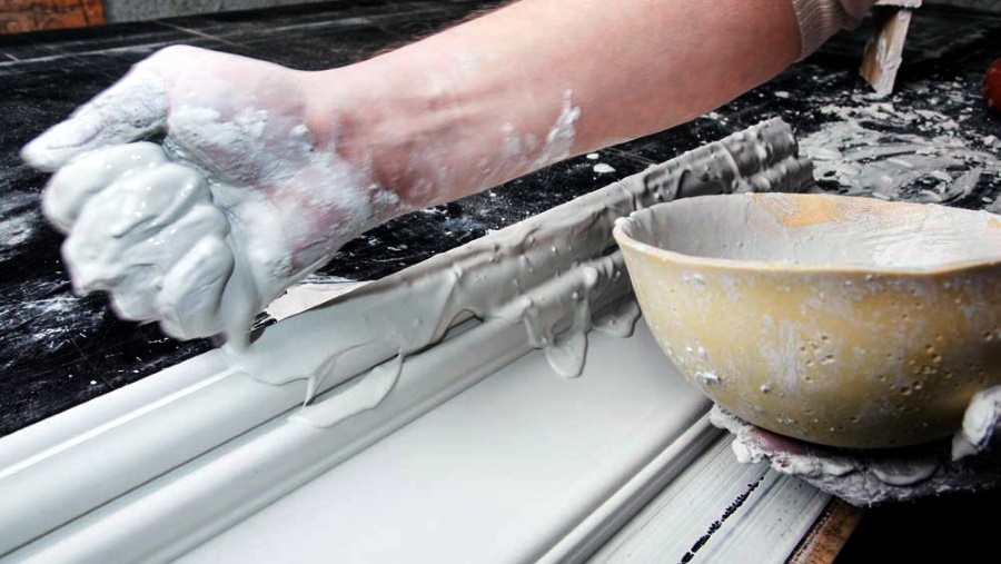 Для великогабаритної ліпнини краще підходить гіпс з маркуванням від Г4 до Г7. Перед змішуванням із водою його гарненько розминають руками або просівають.